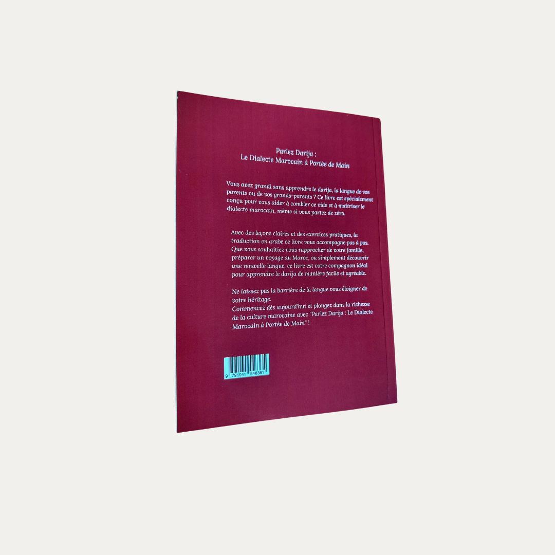 Pour ceux qui veulent renouer avec leur langue maternelle ou ceux qui veulent apprendre le darija, ce livre est fait pour vous, explorez ce manuel d'apprentissage avec une méthode unique et des contenus enrichissants, c'est votre compagnon idéal pour une immersion totale dans la langue marocaine.